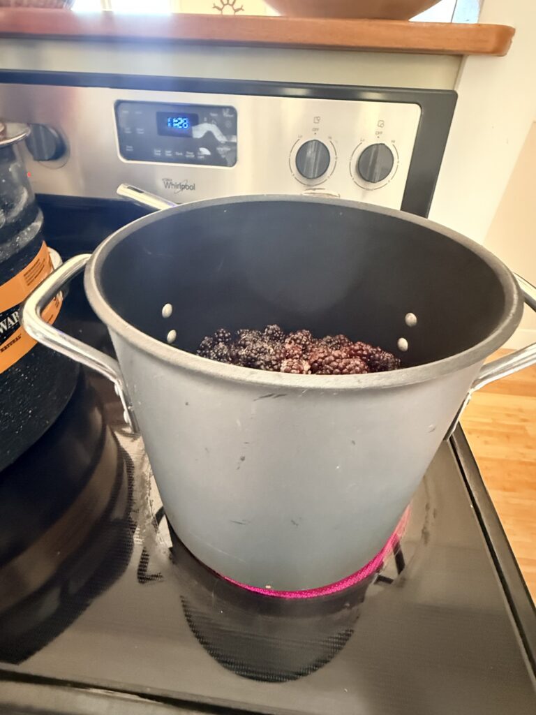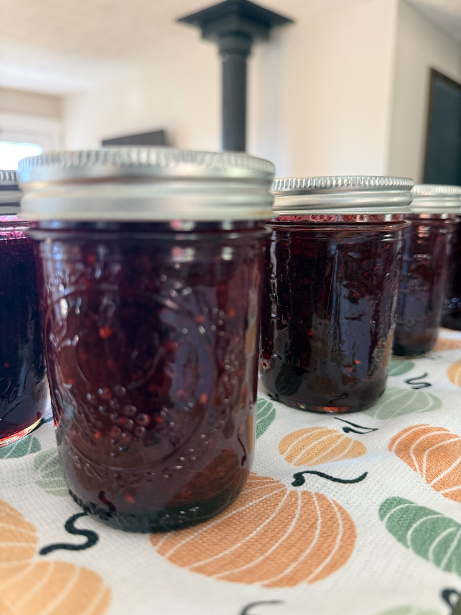 Freezing the berries lets me separate harvest from preserving. I can pick when everything is ripe and deal with the jars when I actually have the time and energy to enjoy it.