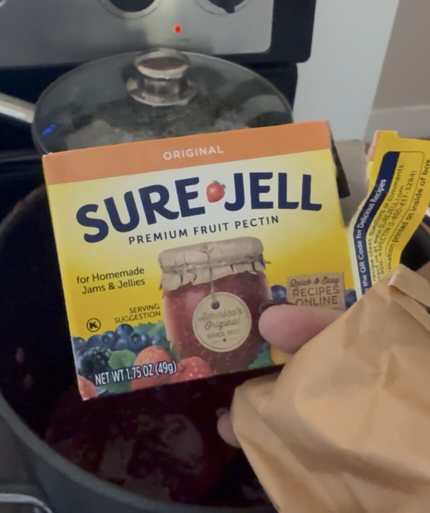 Add the lemon juice and powdered pectin. Bring to a full rolling boil over high heat, stirring constantly.