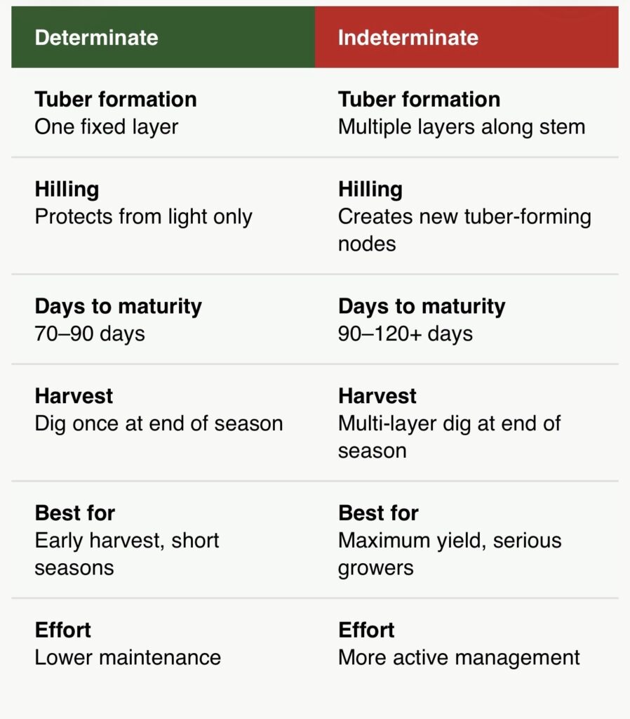Most of us learned the word “determinate” from tomatoes. But potatoes work the same way — they fall into two categories based on how and when they form their tubers, and how they respond to hilling.